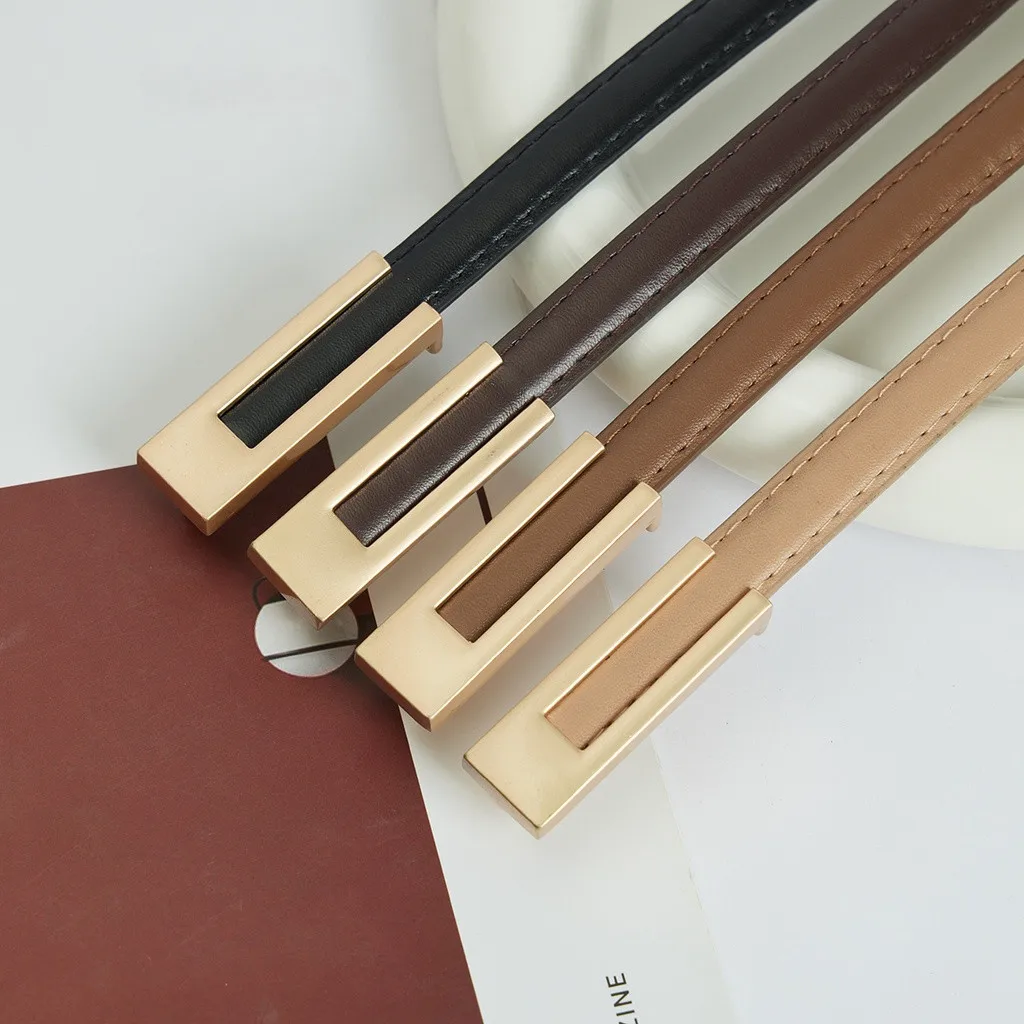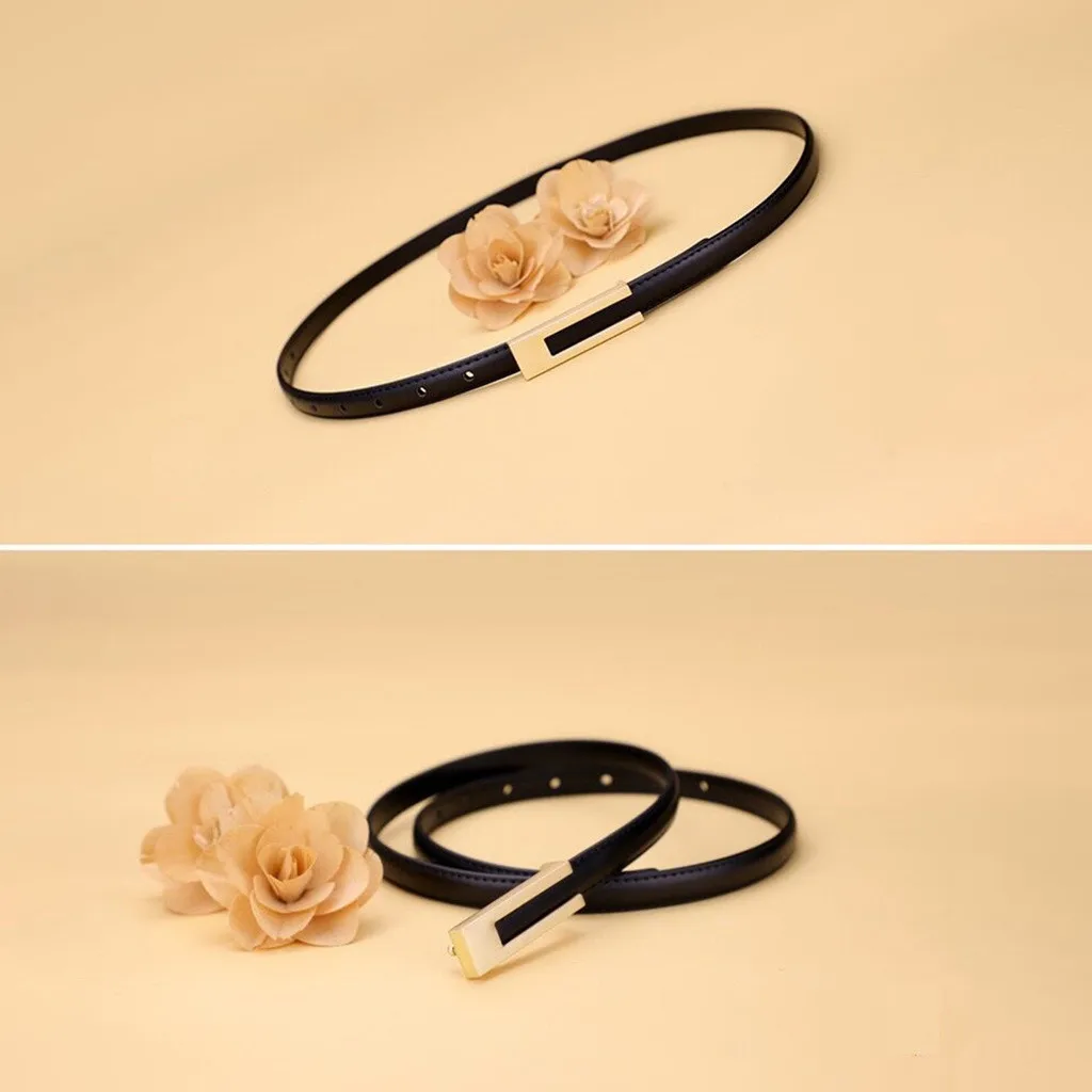 Fashionable PU Leather Thin Waist Strap Metal Accessories Basic Belt Women Casual Porous Adjustable Fashion Belts