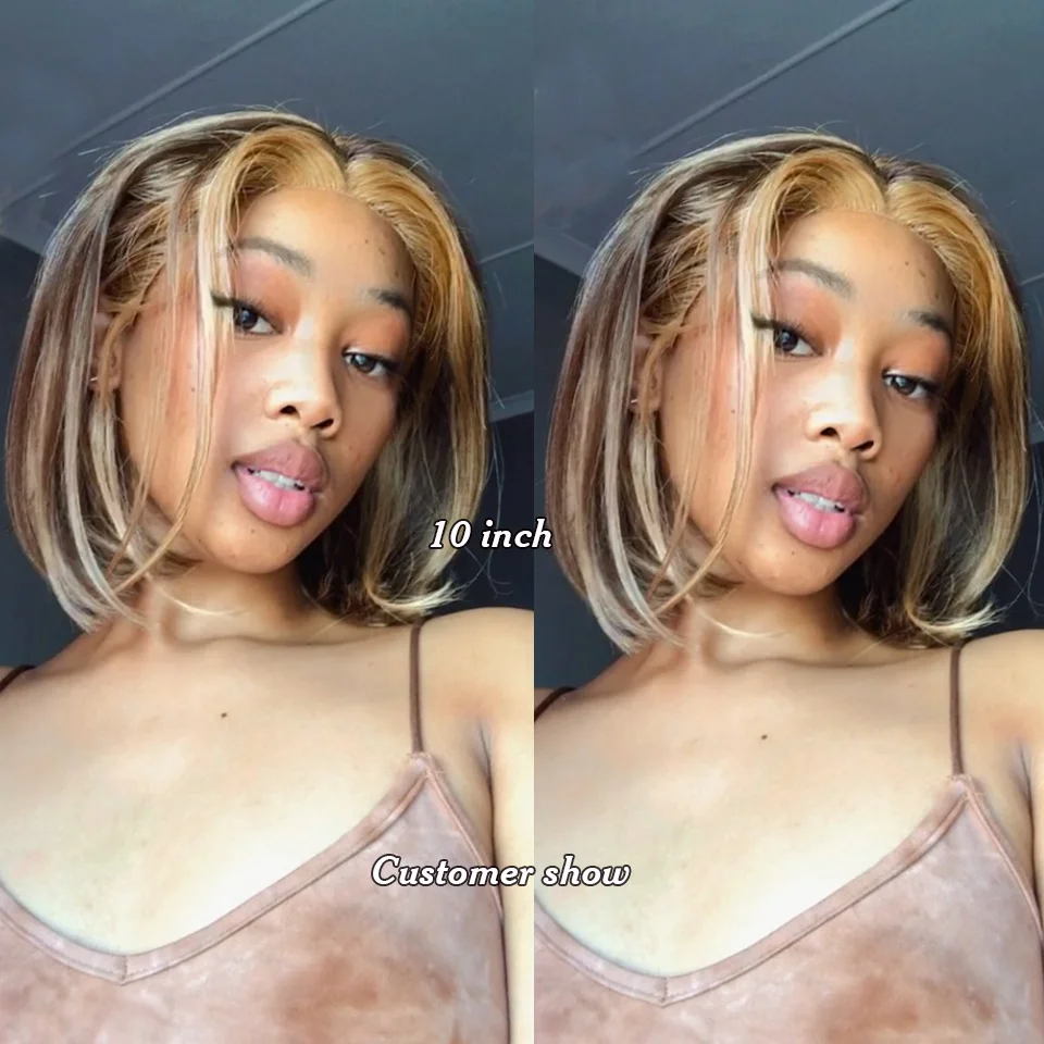 Highlight Straight Bob Wig 13X6X1 Lace Front Wigs For Women Ombre Blond Color Wigs Brazilian Remy Hair Short Bob Human Hair Wigs